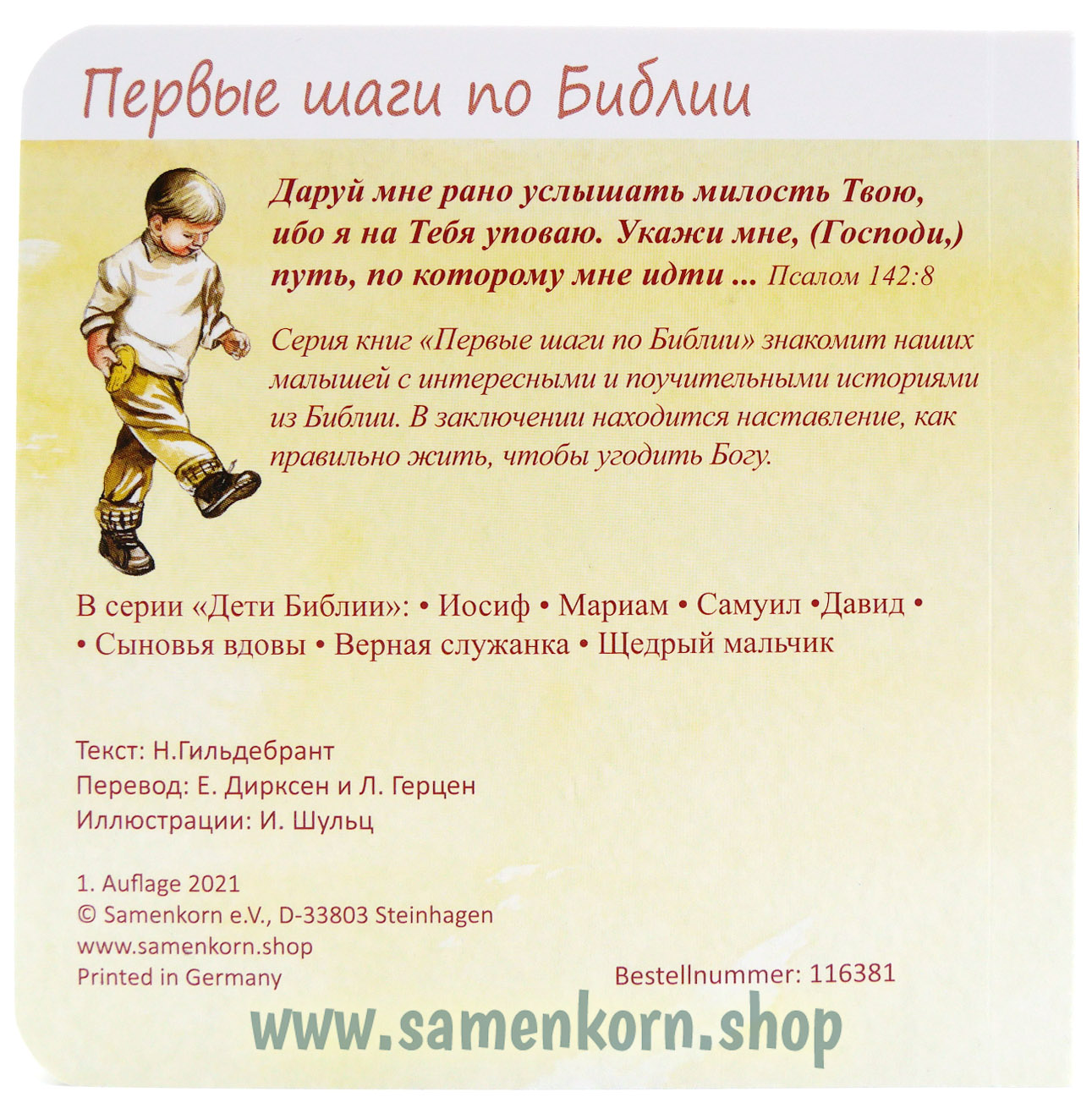 Серия книг "Первые шаги по Библии" знакомит наших малышей с интересными и поучительными историями из Библии. В заключении находится наставление, как правильно жить, чтобы угодить Богу.
