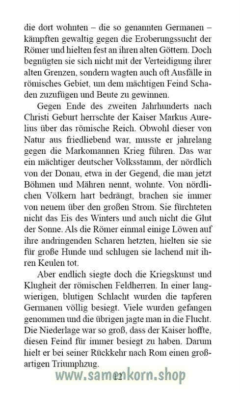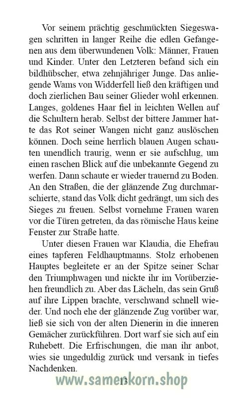 Der etwa zehnjährige germanische Junge wird zum Sklaven in einem vornehmen Haus in Rom. Sehnsucht nach dem Elternhaus und den germanischen Göttern überflutet ihn. Schneller groß und stark zu werden, um ins Heimatland zu fliehen und gegen den Feind zu kämpfen – das sind die Gedanken, die ihn bewegen. Ein Buch über einen Helden, das seine Herrin Klaudia und ihre Freundin lesen, weckt in ihm ein großes Interesse. Er möchte über den wunderbaren Jesus, dem sogar das Meer untertan ist, mehr erfahren. Was bewegt die Menschen diesem Jesus nachzufolgen und sogar um des Glaubens willen zu sterben? Erst später als befreiter Sklave, erlebt er wie stark und allmächtig Jesus, der Sohn Gottes ist!