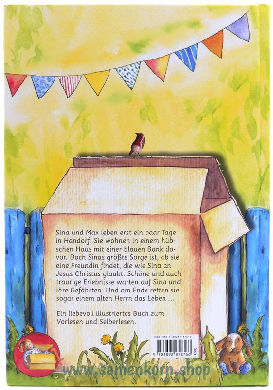 Sina und Max leben erst ein paar Tage in Handorf. Sie wohnen in einem hübschen Haus mit einer blauen Bank davor. Doch Sinas größte Sorge ist, ob sie eine Freundin findet, die wie Sina an Jesus Christus glaubt. Schöne und auch traurige Erlebnisse warten auf Sina und ihre Gefährten. Und am Ende retten sie sogar einem alten Herrn das Leben ...