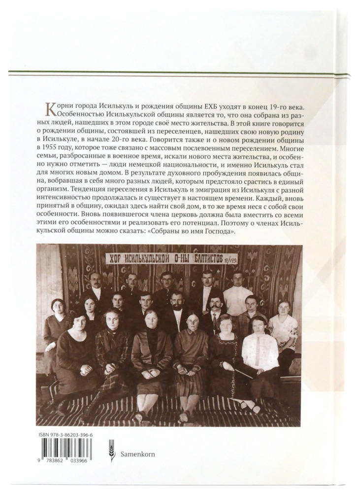 Корни города Исилькуль и рождение общины ЕХБ уходят в конец 19-го века. Особенностью Истлькульской общины является то, что она собрана из разных людей, нашедших в этом городе своё место жительства. В этой книге говорится о рождении общины, состоявший из переселенцев, нашедших свою новую родину в Исилькуле, в начале 20-го века. Говорится также и о новом рождении общины в 1955 году, которое тоже связано с масовым послевоенным переселением.