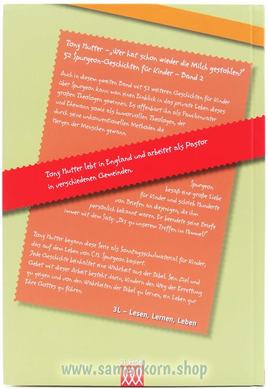 Auch in diesem zweiten Band mit 52 weiteren Geschichten für Kinder über Spurgeon kann man einen Einblick in das private Leben dieses großen Theologen gewinnen. Es offenbart ihn als Familienvater und Ehemann sowie als humorvollen Theologen, der durch seine unkonventionellen Methoden die Herzen der Menschen gewann.