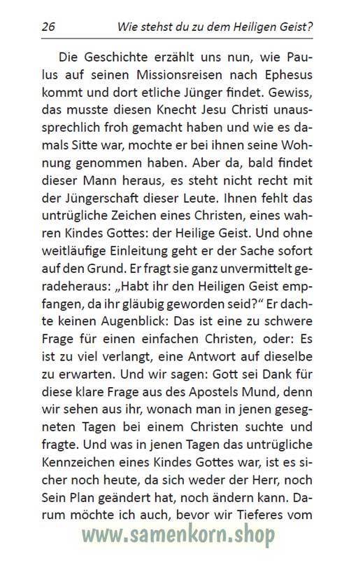 "Manche teure Seele steht unter dem Druck ihrer entmutigenden Erfahrungen, die sie bis jetzt durchlebt hat und sie fragt sich, ob es wirklich eine ununterbrochene Gemeinschaft mit Gott gibt. Ob unser Leben voll Geistes sein kann, wir allezeit Sieg über jede erkannte Sünde haben können und uns ein Leben in der Gegenwart Gottes möglich ist.