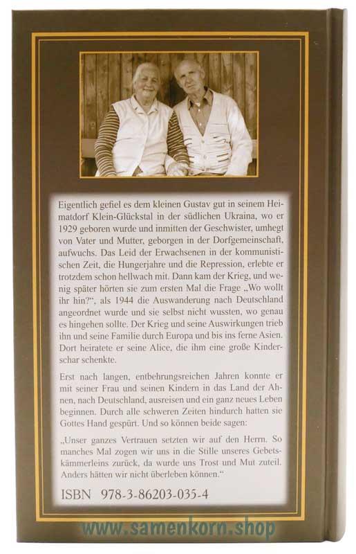 Erst nach langen, entbehrungsreichen Jahren konnte er mit seiner Frau und seinen Kindern in das Land der Ahnen, nach Deutschland, ausreisen und ein ganz neues Leben beginnen. Durch alle schweren Zeiten hindurch hatten sie Gottes Hand gespürt. Und so können beide sagen: „Unser ganzes Vertrauen setzten wir auf den Herrn. So manches Mal zogen wir uns in die Stille unseres Gebetskämmerleins zurück, da wurde uns Trost und Mut zuteil. Anders hätten wir nicht überleben können.“