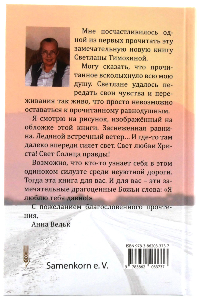 На рисунке, изображённый на обложке этой книги видна заснеженная равнина. Ледяной встречный ветер... И где-то там далеко впереди сияет свет. Свет любви Христа! Свет Солнца правды! Возможно, что кто-то узнает себя в этом одиноком силуэте среди неуютной дороги. Тогда эта книга для вас. И для вас эти замечательные драгоценные Божьи слова: «Я люблю тебя давно!»
